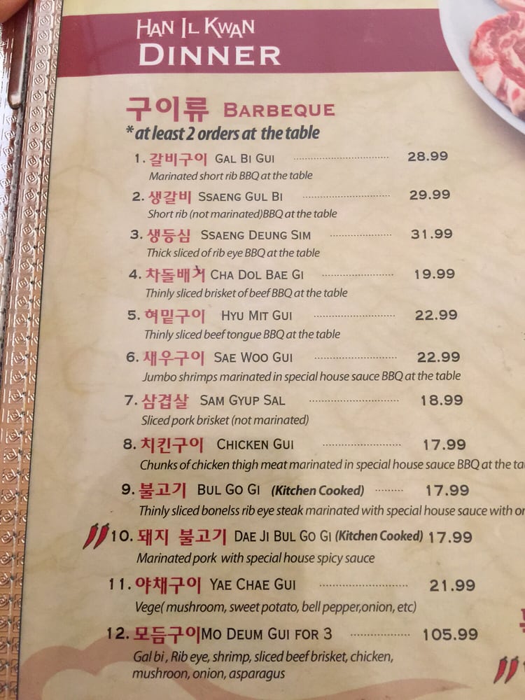 Han Il Kwan Menu (2025 Update)